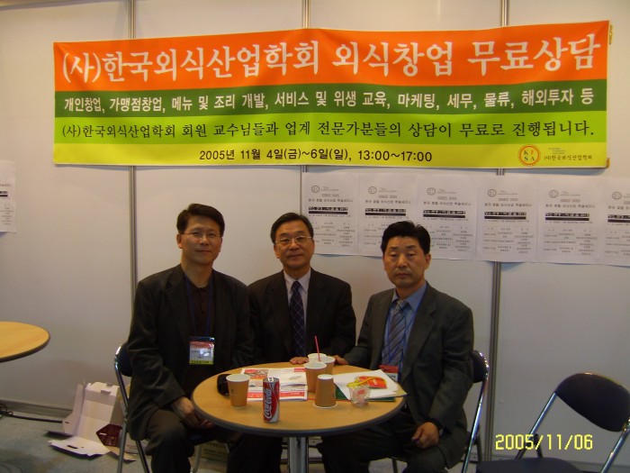 2005. 11. 4-6일까지 COEX에서 개최된 SIRES 2005 중 11월 6일에 참가한 김헌희 회장, 이대홍 교수, 그리고 이용기 교수의 사진 중 두 번째 것입니다.
