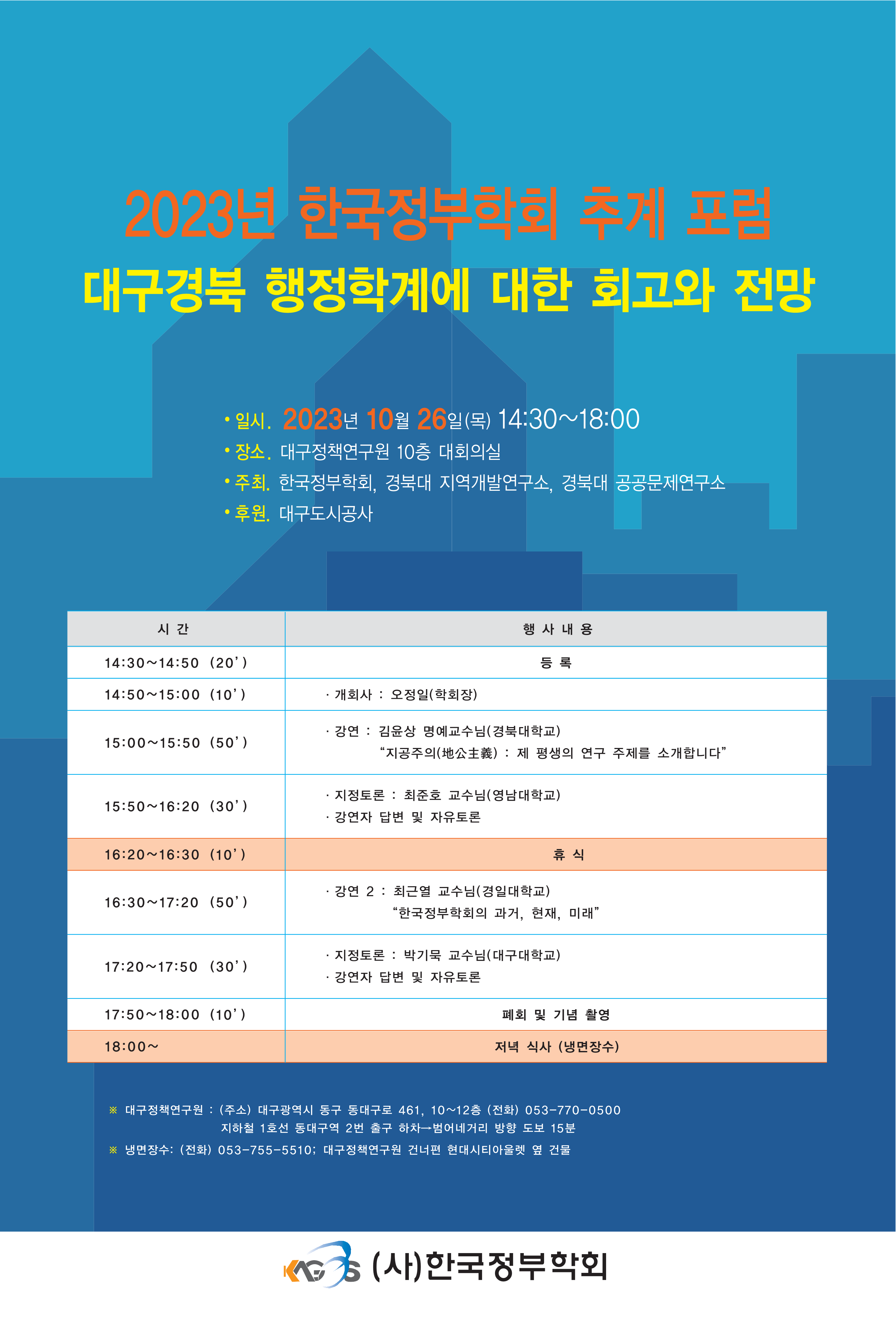 [2023년 포럼] 2023년 10월 26일 한국정부학회 추계 포럼 안내