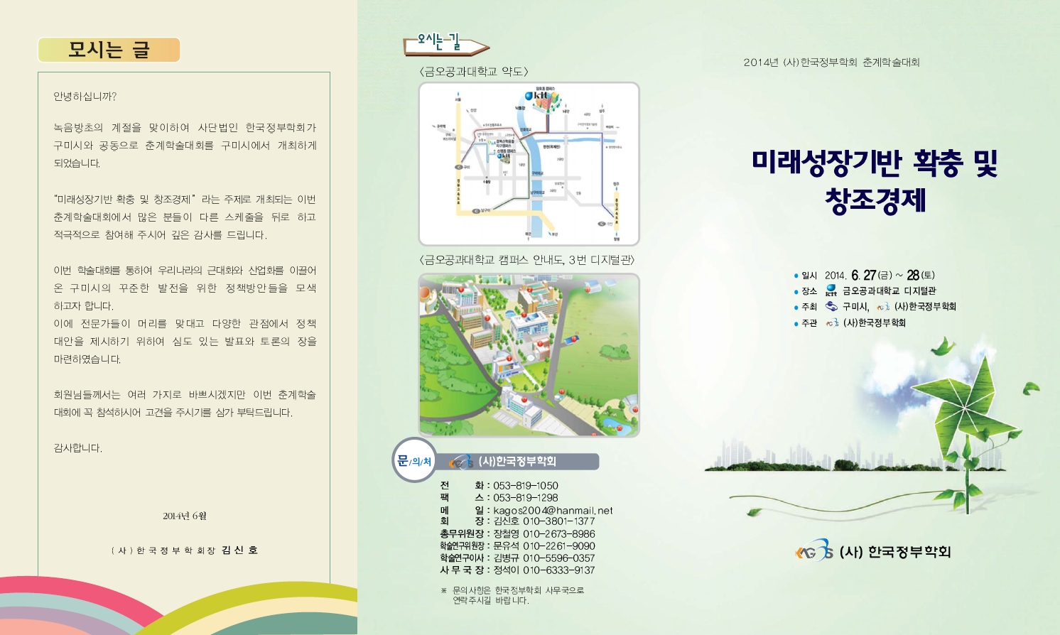 녹음방초의 계절을 맞이하여 사단법인 한국정부학회가 구미시와 공동으로 춘계학술대회를 구미시에서 개최하게 되었습니다.
