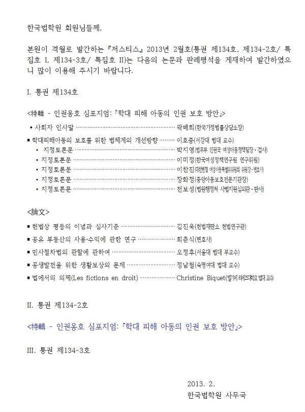 <저스티스 통권 제134호, 제134-2호/ 특집호 I, 제134-3호/ 특집호 II 발간 특집호 간행 공고>