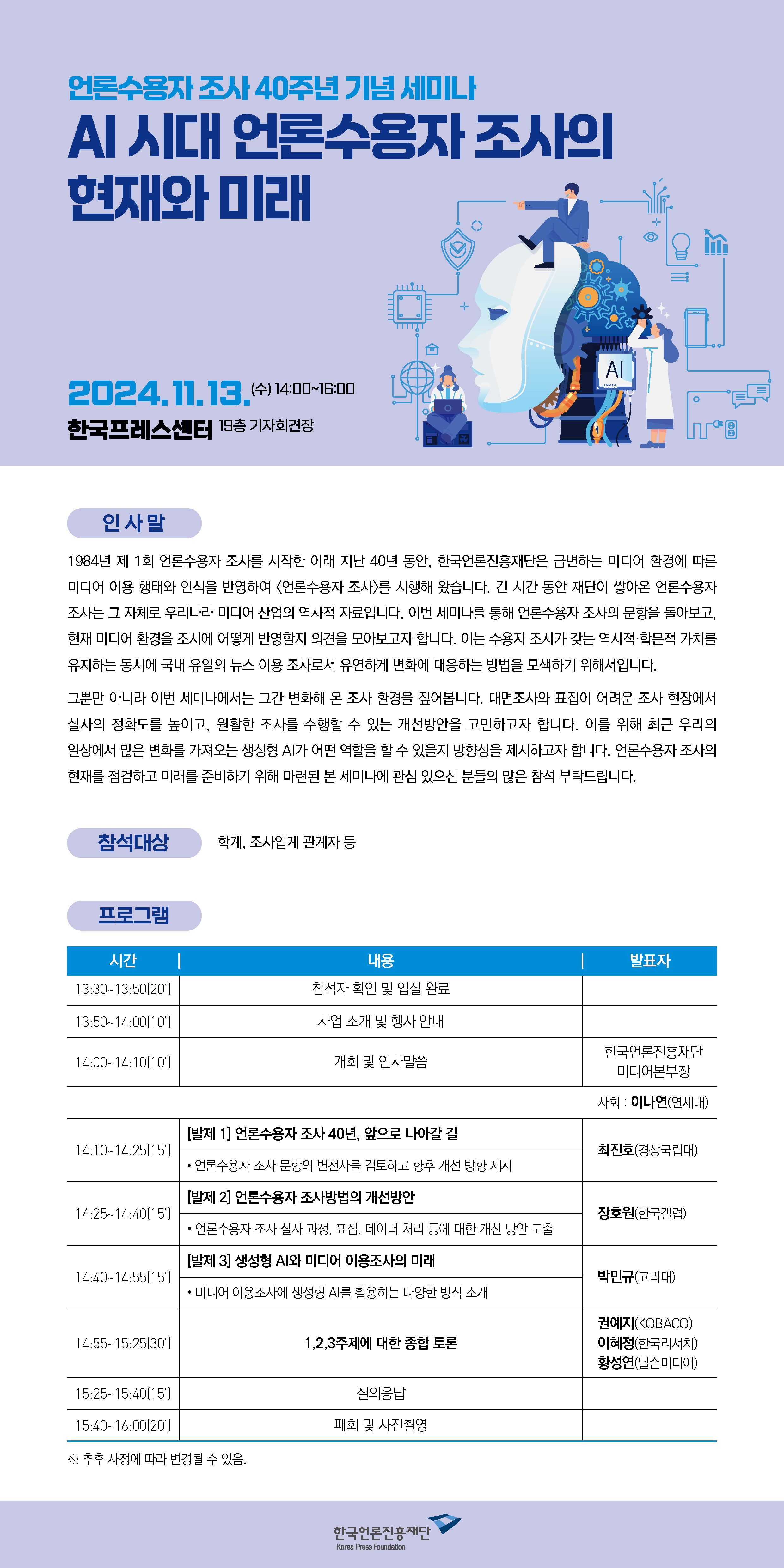 [2024 언론수용자 조사 40주년 기념행사 개요]
