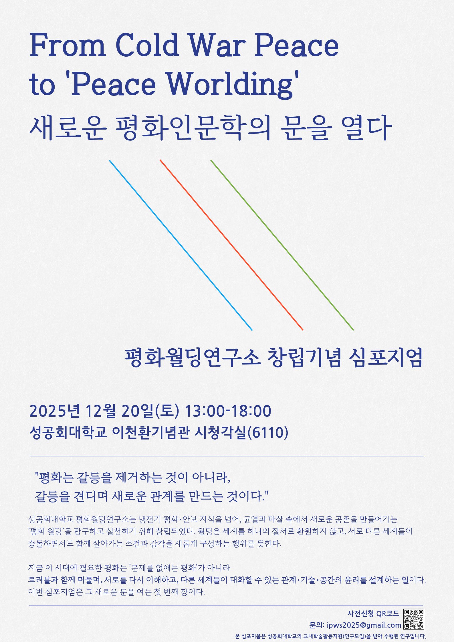 [성공회대 평화월딩연구소] 평화월딩연구소 창립기념 심포지엄 개최 안내