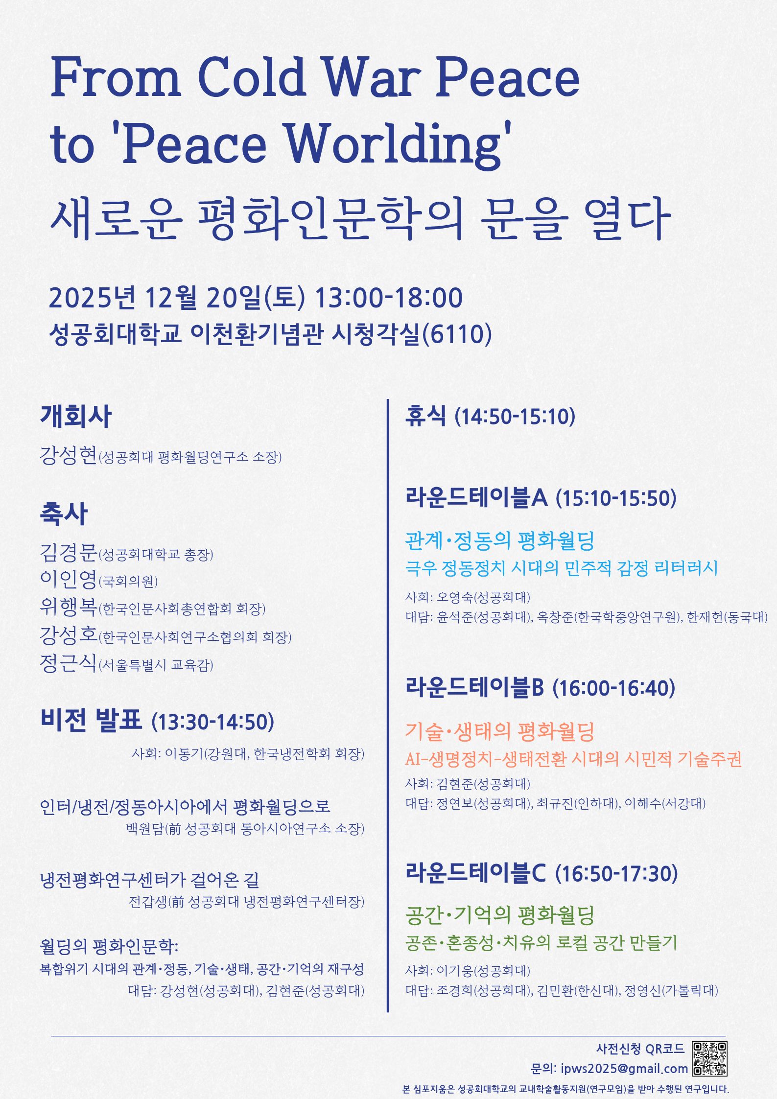 “월딩의 평화인문학: 복합위기 시대의 관계·정동, 기술·생태, 공간·기억의 재구성”