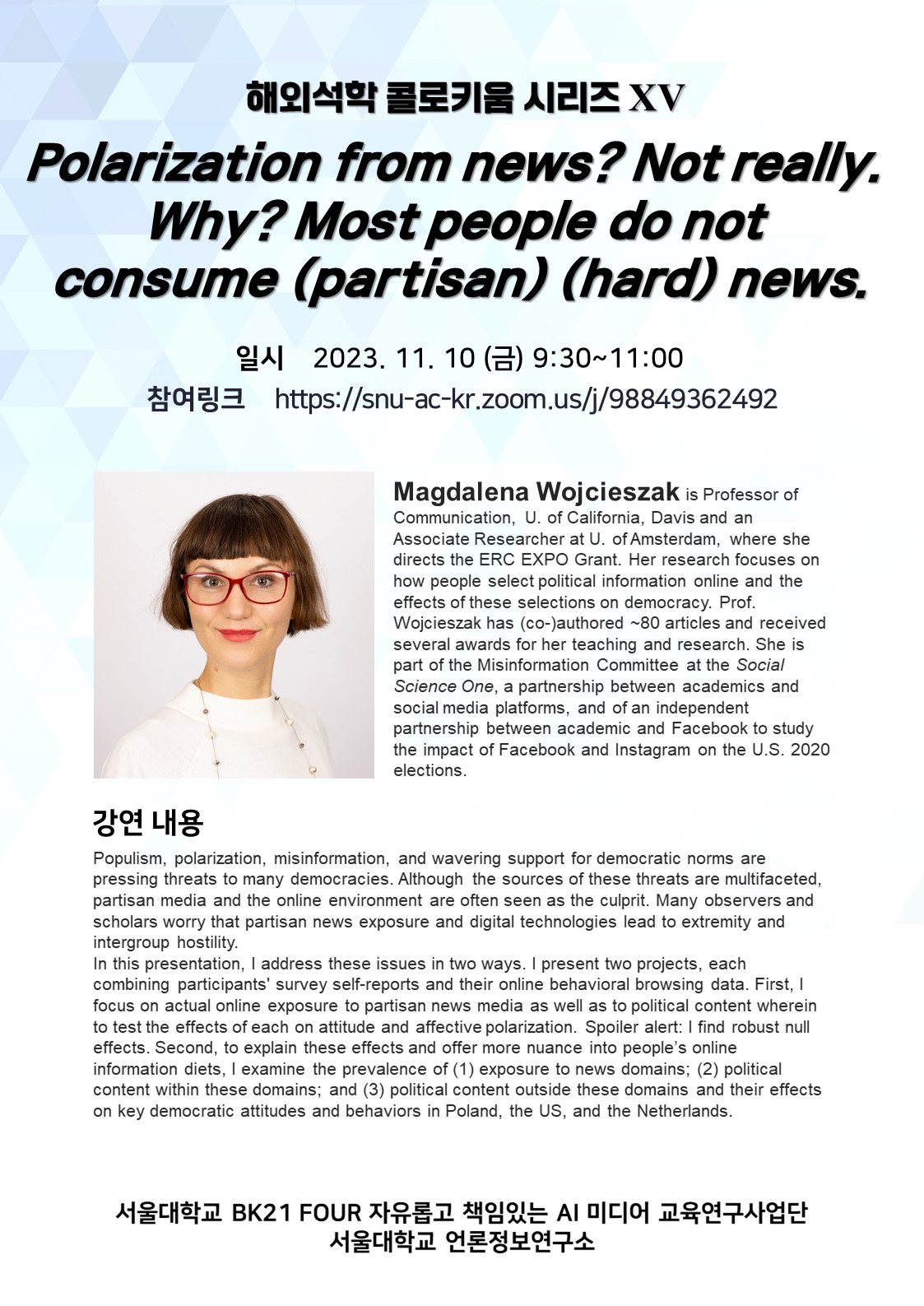 □ 강연자 :  Magdalena Wojcieszak (University of California, Davis)