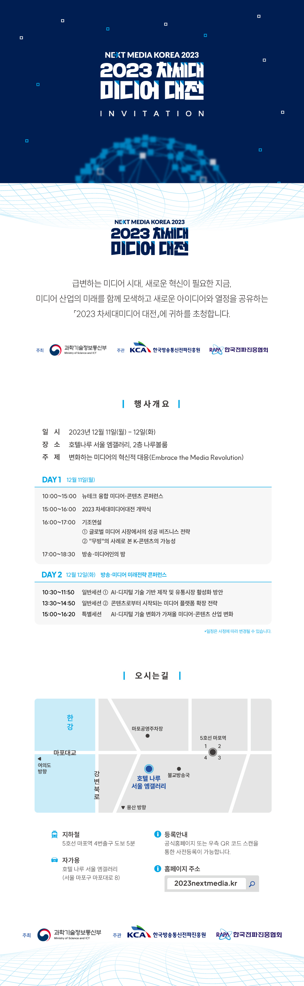 - 2023 차세대미디어대전 운영사무국 (2023nextmedia@gmail.com / 070-4467-2332)