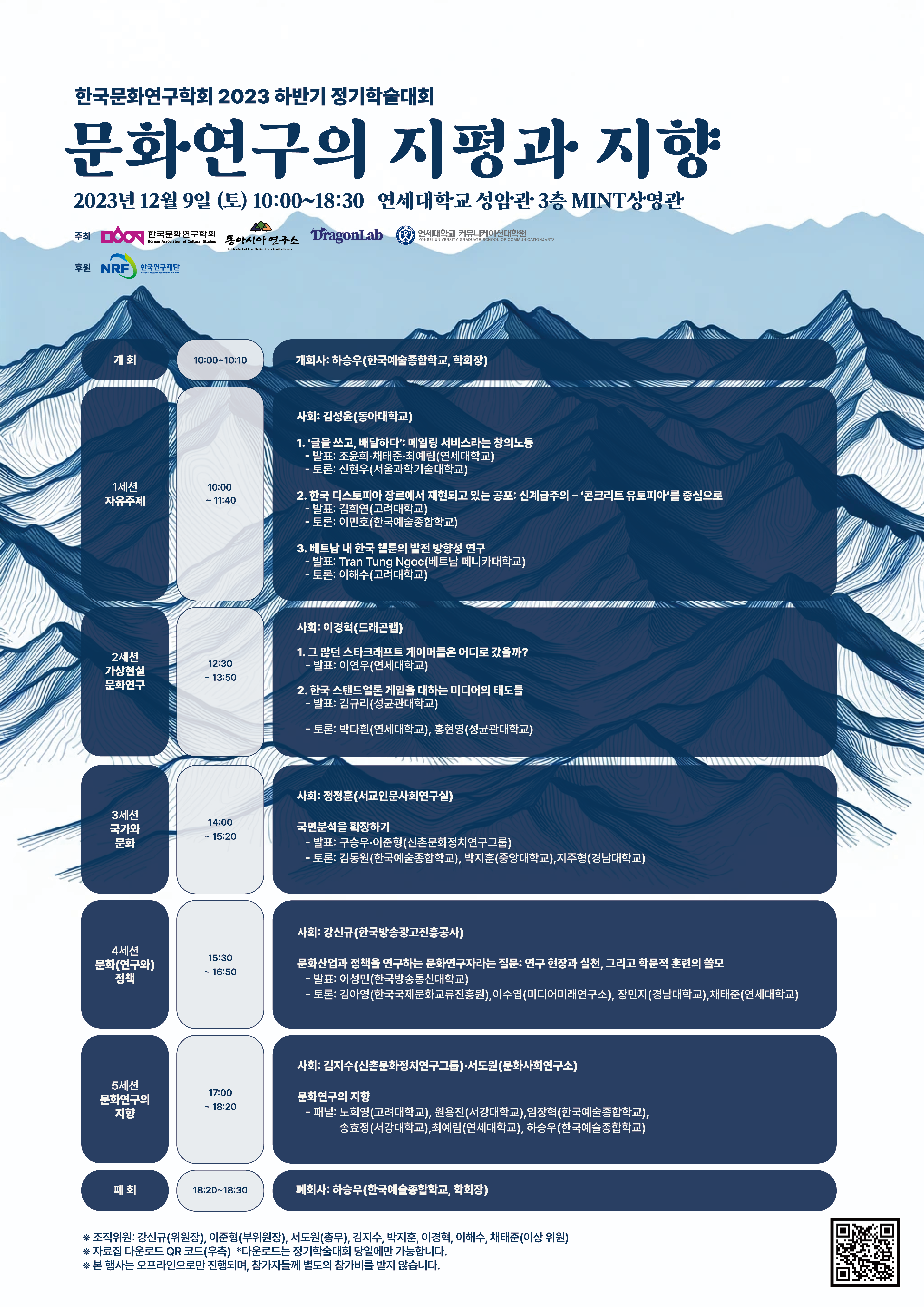 2. 한국문화연구학회에서 <2023 하반기 정기학술대회>를 다음과 같이 개최합니다. 회원님들의 많은 관심과 참여 바랍니다.