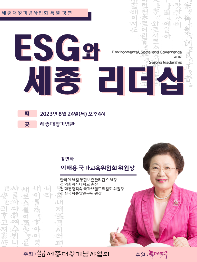 기업의 비재무적 요소인 환경, 사회, 지배구조와 세종 지도력을 주제로 하는