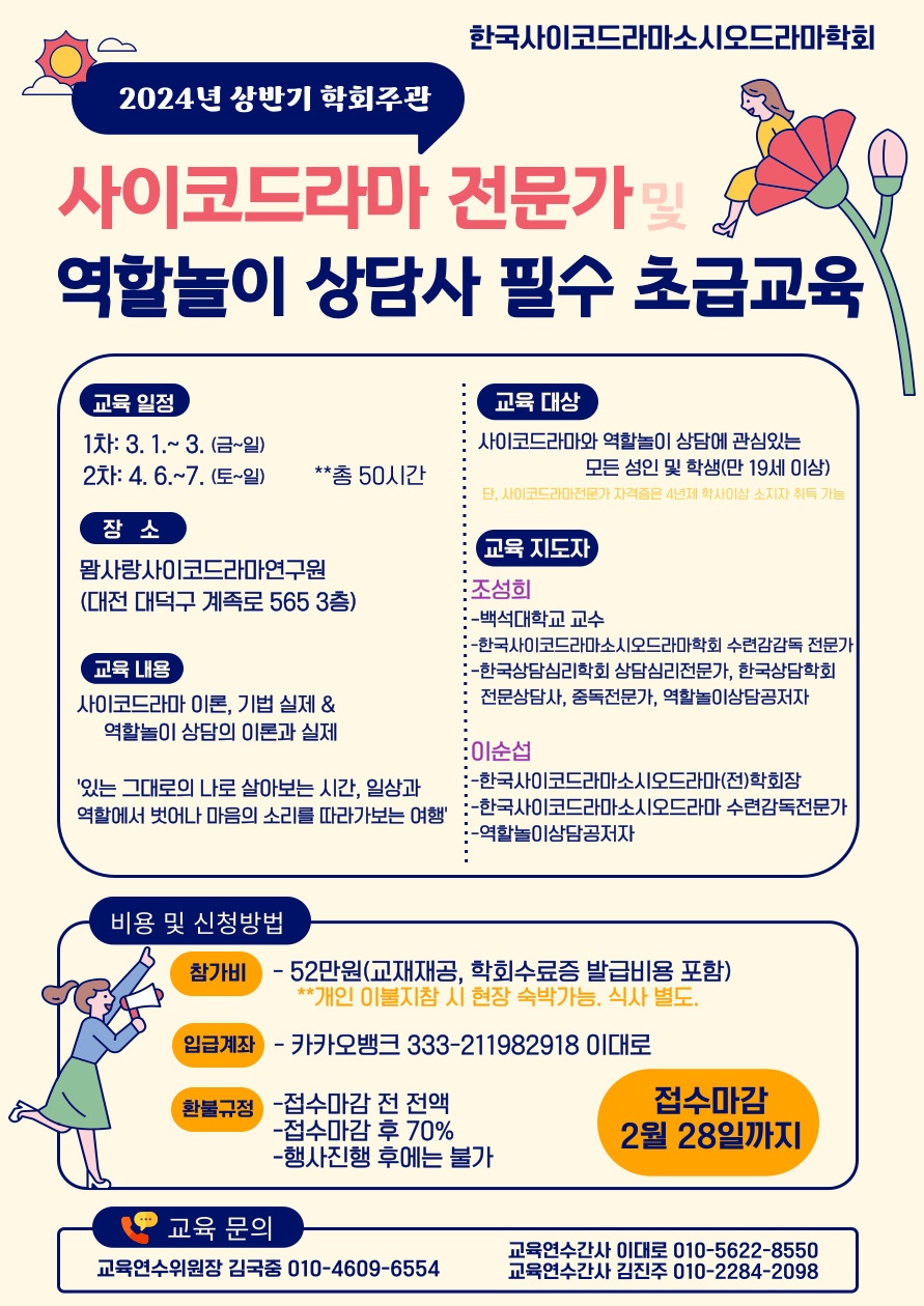 2024년 한국사이코드라마소시오드라마학회주관 사이코드라마전문가 및 역할놀이상담사 초급과정