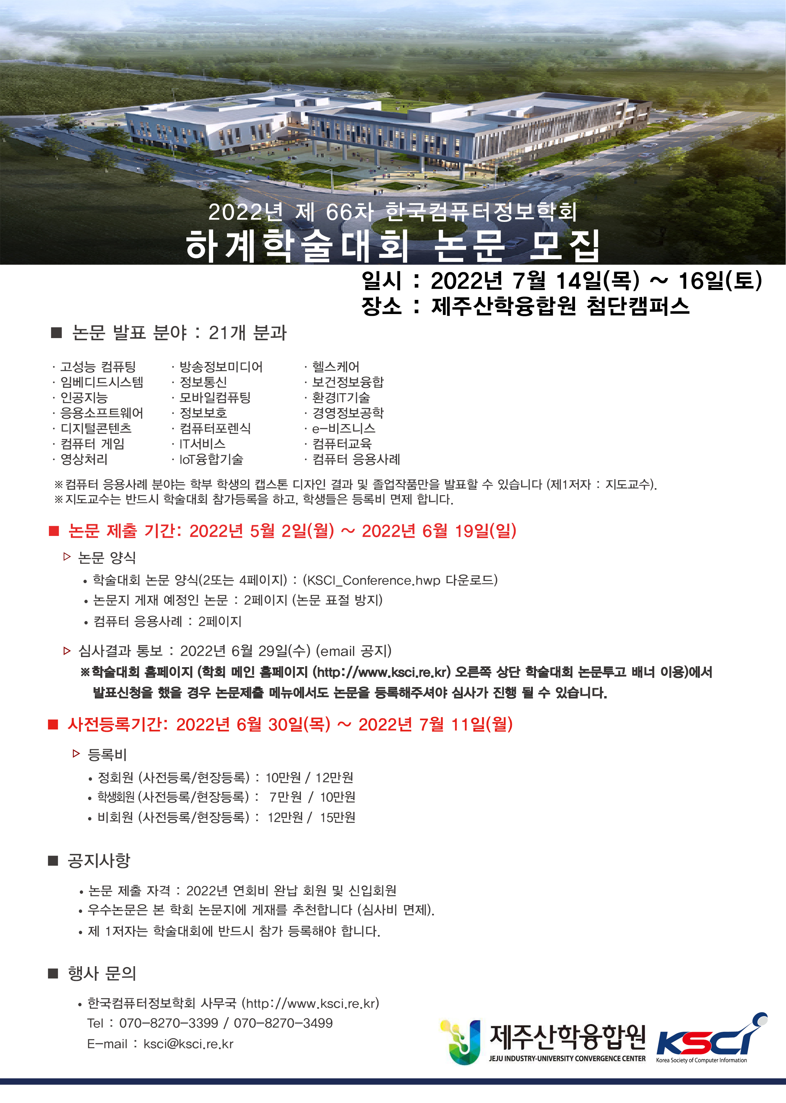 2022년 제66차 한국컴퓨터정보학회 하계학술대회 논문 모집