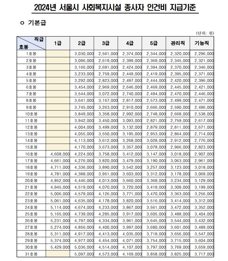 5. 근로조건 : 2024년 서울시 사회복지시설 종사자 인건비 지급기준(5급)