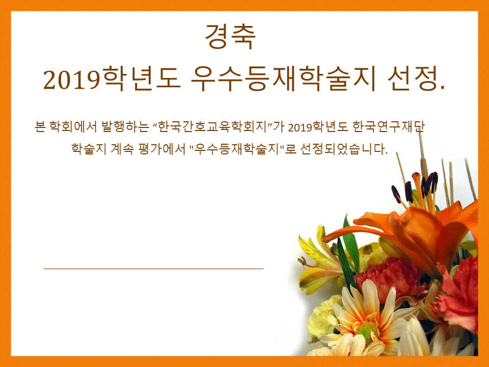 본 한국간호교육학회지가  2019년 한국연구재단 학술지계속평가에서 '우수등재학술지'로 선정되었습니다.