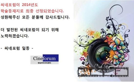씨네포럼 학술등재후보지 선정 감사인사