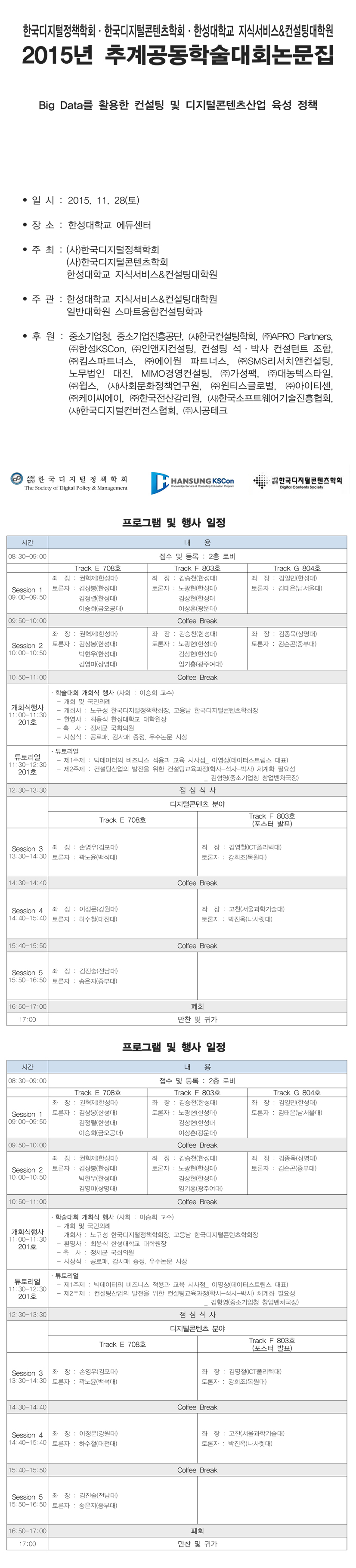 2015 한국디지털콘텐츠학회/한국디지털정책학회 공동학술대회 프로그램 공지