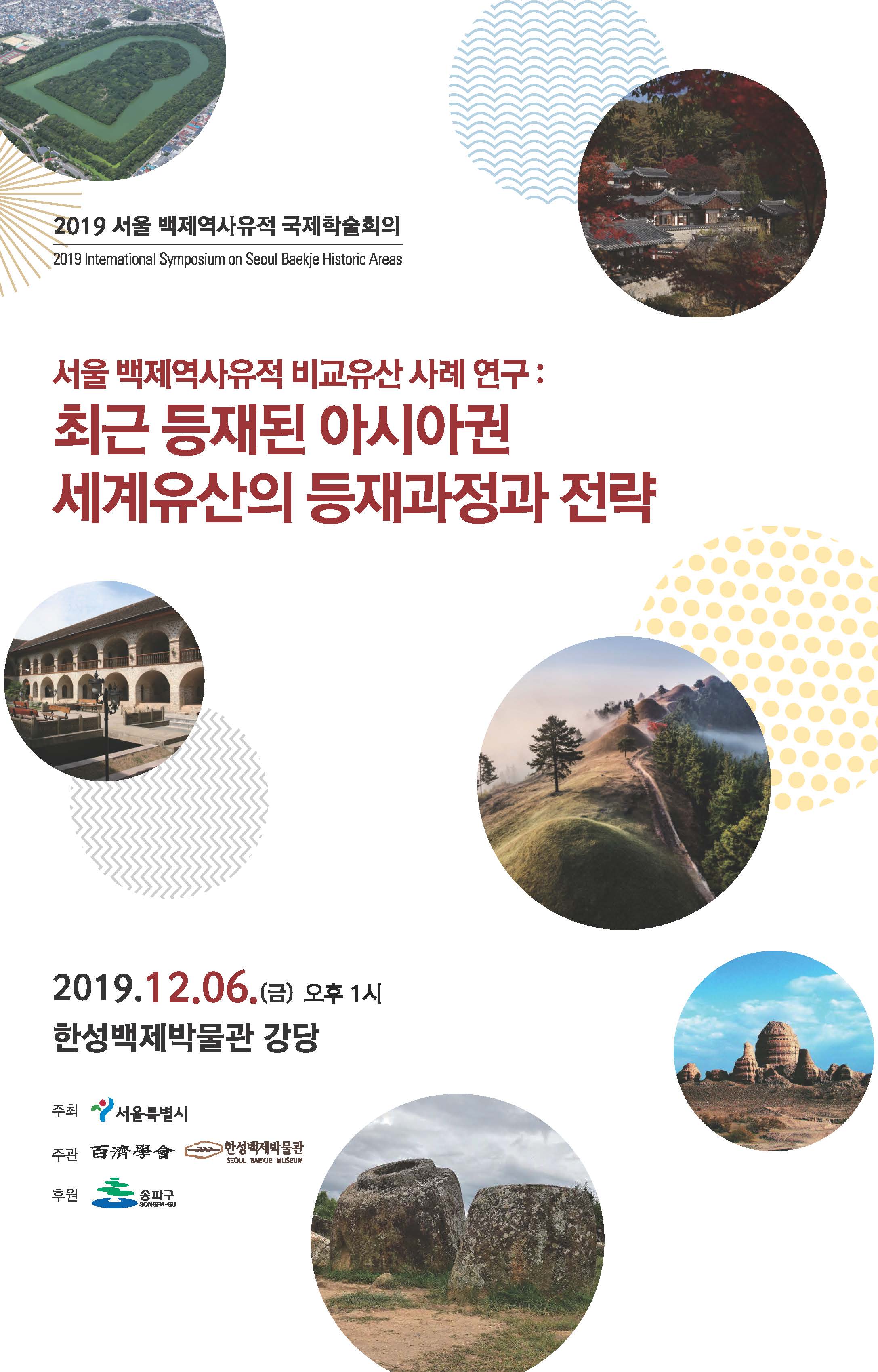 2019 서울 백제역사유적 국제학술회의가 위과 같이 개최되오니, 학회원들의 많은 참여 부탁드립니다.