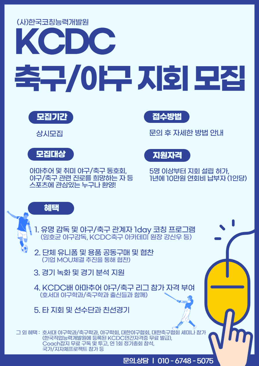 전국의 축구와 야구를 사랑하고 즐기는 자들을 대상으로 축구/야구 지회를 모집 중입니다.많은 가입 부탁드립니다.