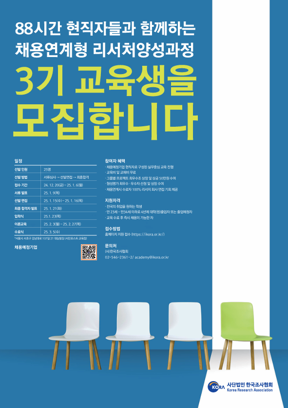 [채용]사단법인 한국조사협회 「채용연계형 리서처양성과정 3기」 참여자 모집 공고