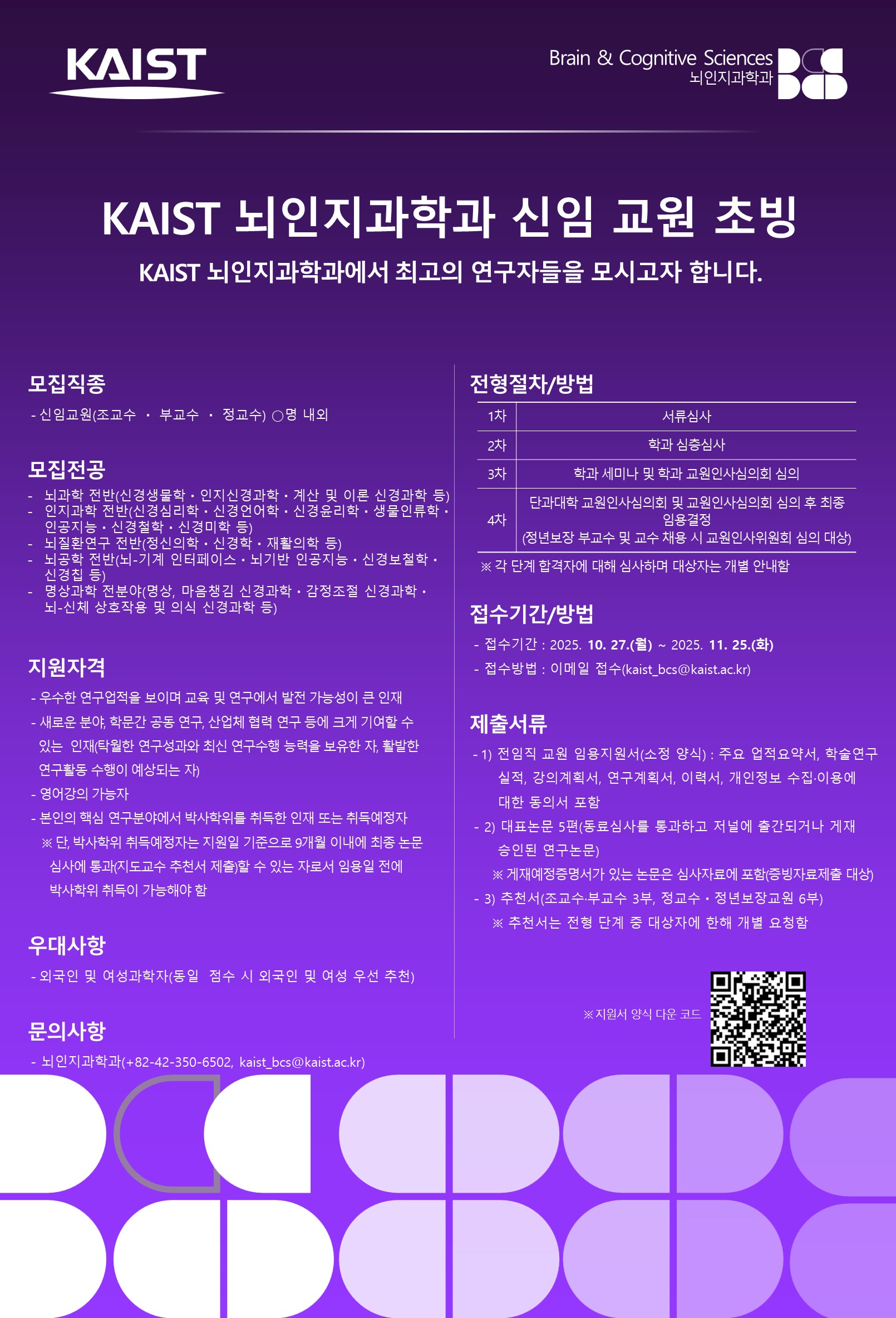 KAIST 뇌인지과학과 채용 공고 바로가기: