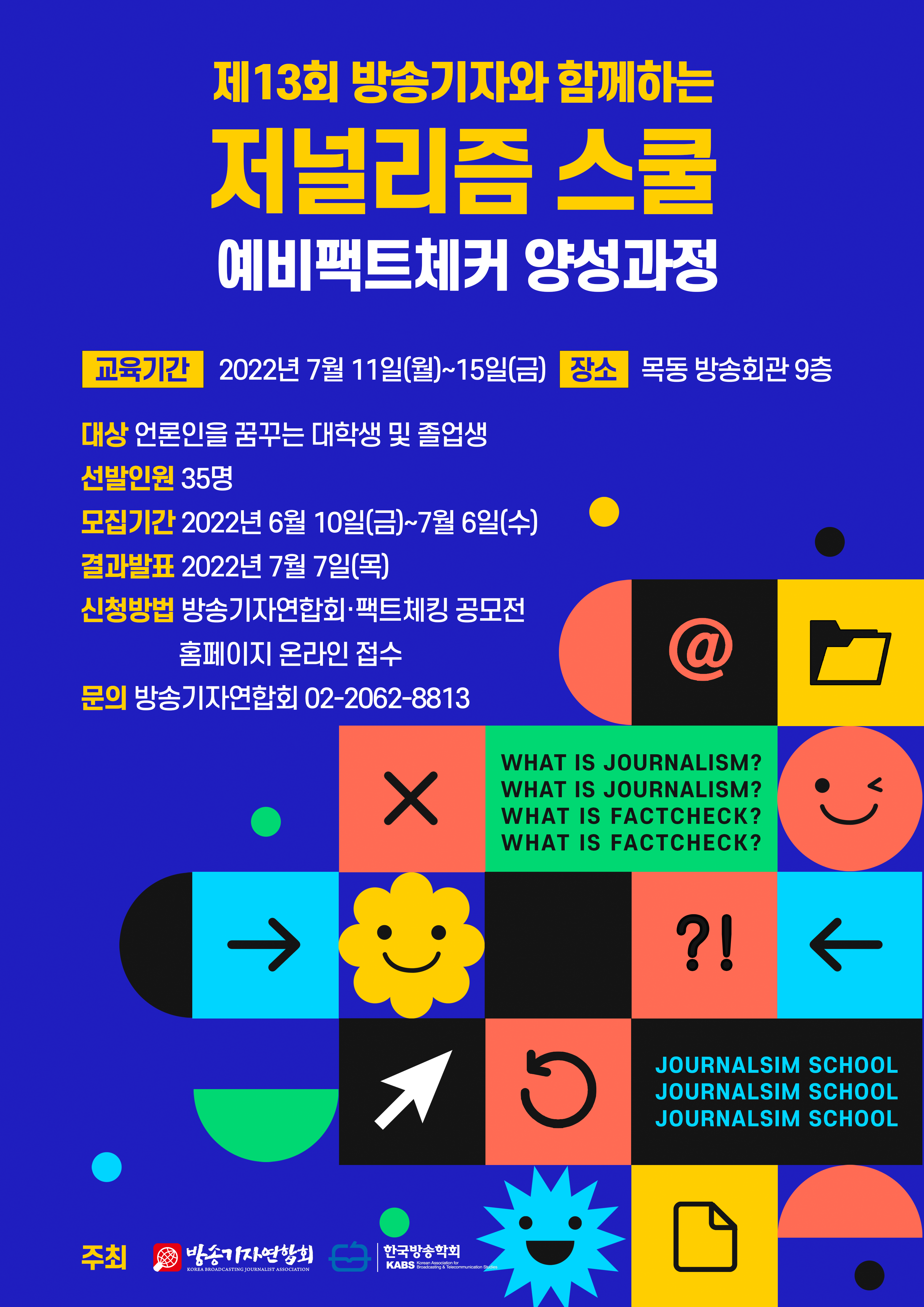 [연장공지] 방송기자연합회-한국방송학회 공동주최 <제13회 방송기자와 함께하는 저널리즘 스쿨-예비 팩트체커 양성과정> 개최