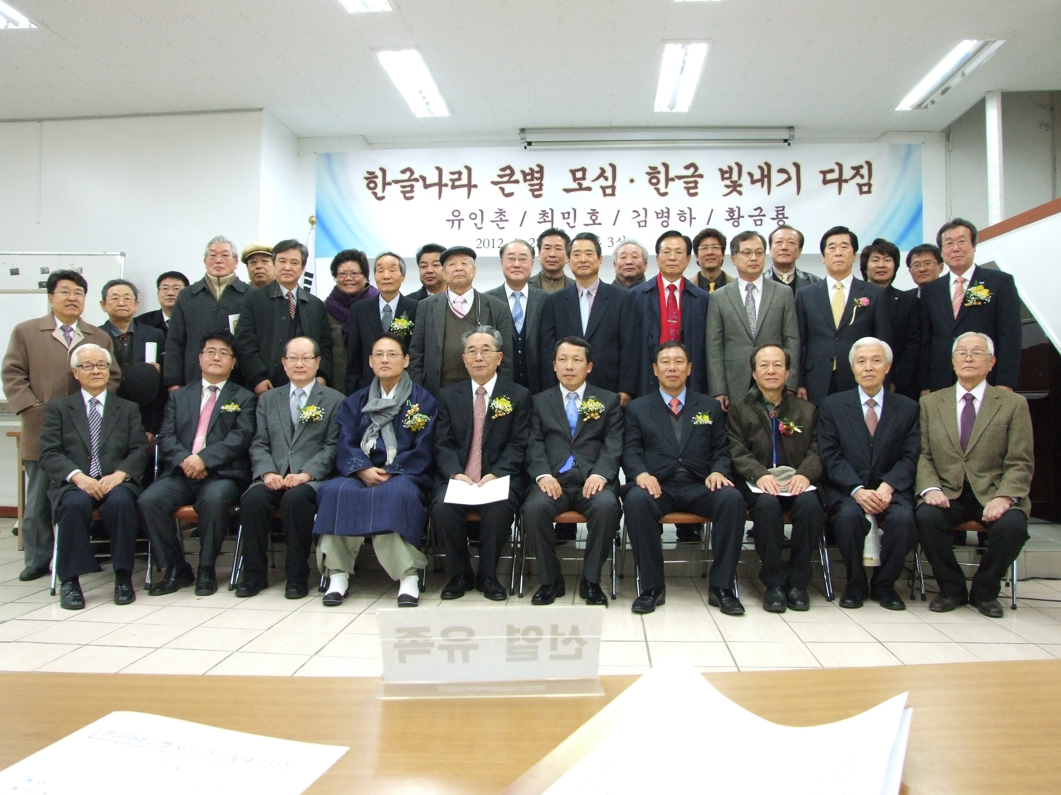 ▲ 2012년 1월 28일(토) 오후 3시부터 한글회관 강당에서 열린 '한글나라 큰별 모심/한글 빛내기 다짐'의 자리에 함께한 이들의 모습.