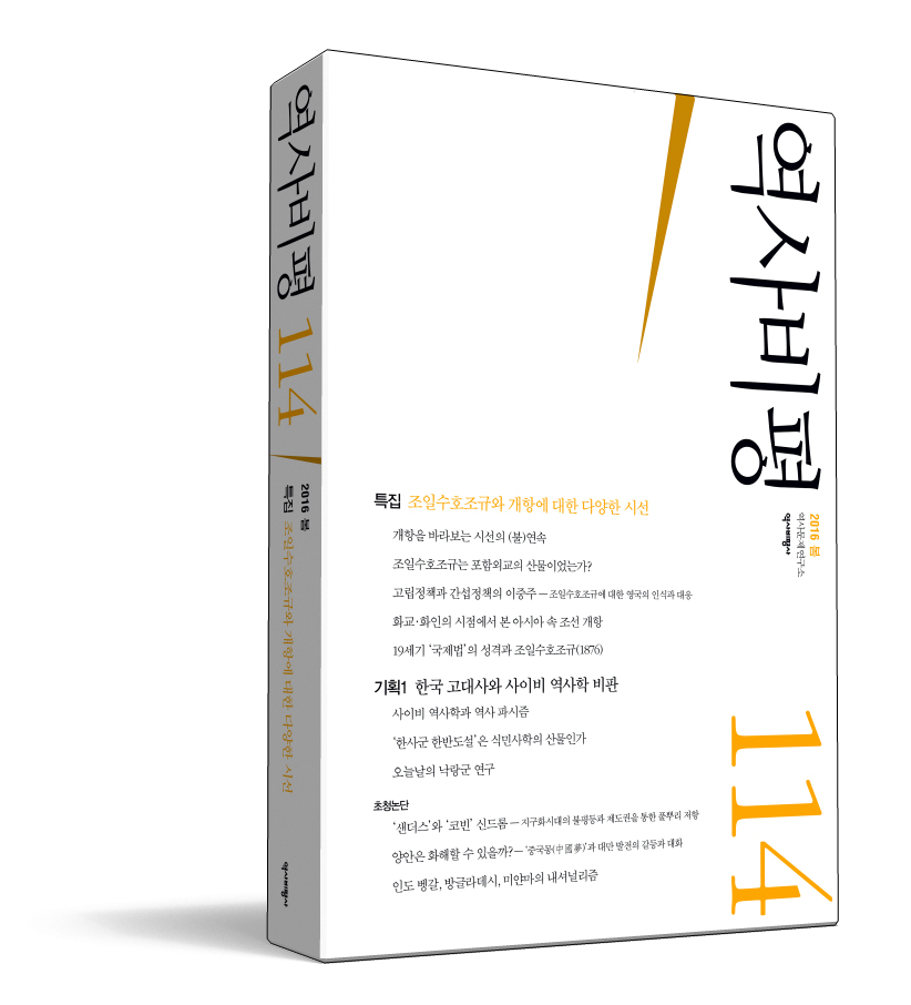 「역사비평」114호. 역사, 국제법, 국제정치, 그리고 경제사의 관점에서 조일수호조규와 개항을 분석하는 글로 특집을 엮었다. 한국 근대사의 어디에서부터 실타래가 꼬이기 시작했는가를 되돌아보고, 앞으로의 연구와 학계의 논쟁을 촉발하는 역할을 하고자 한다. 또한 현재 경희대에서 진행 중인 고대사 연구자들의 워크샵에서 발표된 원고들을 수정하여 기획으로 엮었다.