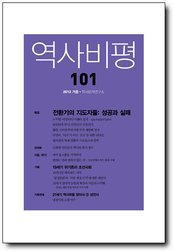 대통령 선거를 앞둔 뜨거운 정치의 계절, 「역사비평」이 준비한 특집은 '전환기의 지도자들'이다. 어떤 전환기인가? 유사민주주의에서 친위 쿠데타에 의한 독재로(필리핀 마르코스), 신자유주의 우파 정권에서 성장과 분배를 결합하려 한 좌파 정권으로(브라질 룰라), 신자유주의 중도 이념에서 진보적 포퓰리즘까지 혼재된 상태로부터 극단의 정치로(미국 클린턴/부시), 인종 차별 독재로부터 모두를 위한 무지개 민주주의로(남아공 만델라). 여기에 한국의 노무현, 이명박 정부의 어젠다 정치에 관한 실증 연구를 덧붙였다.