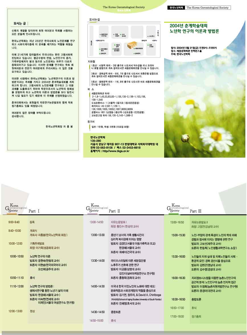 저희 한국노년학회는 2004년의 봄을 맞아 춘계학술대회를 개최합니