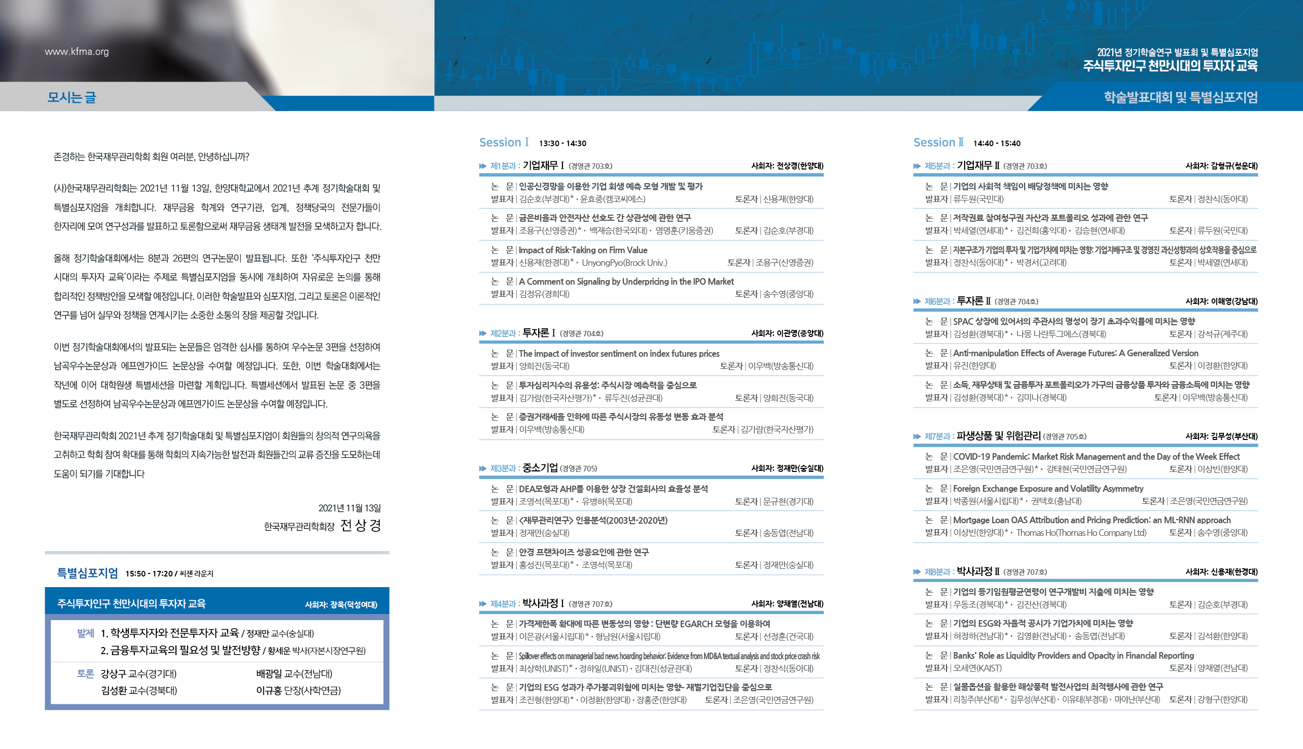 -  2021년 한국재무관리학회 추계정기학술대회 및  특별심포지엄 -