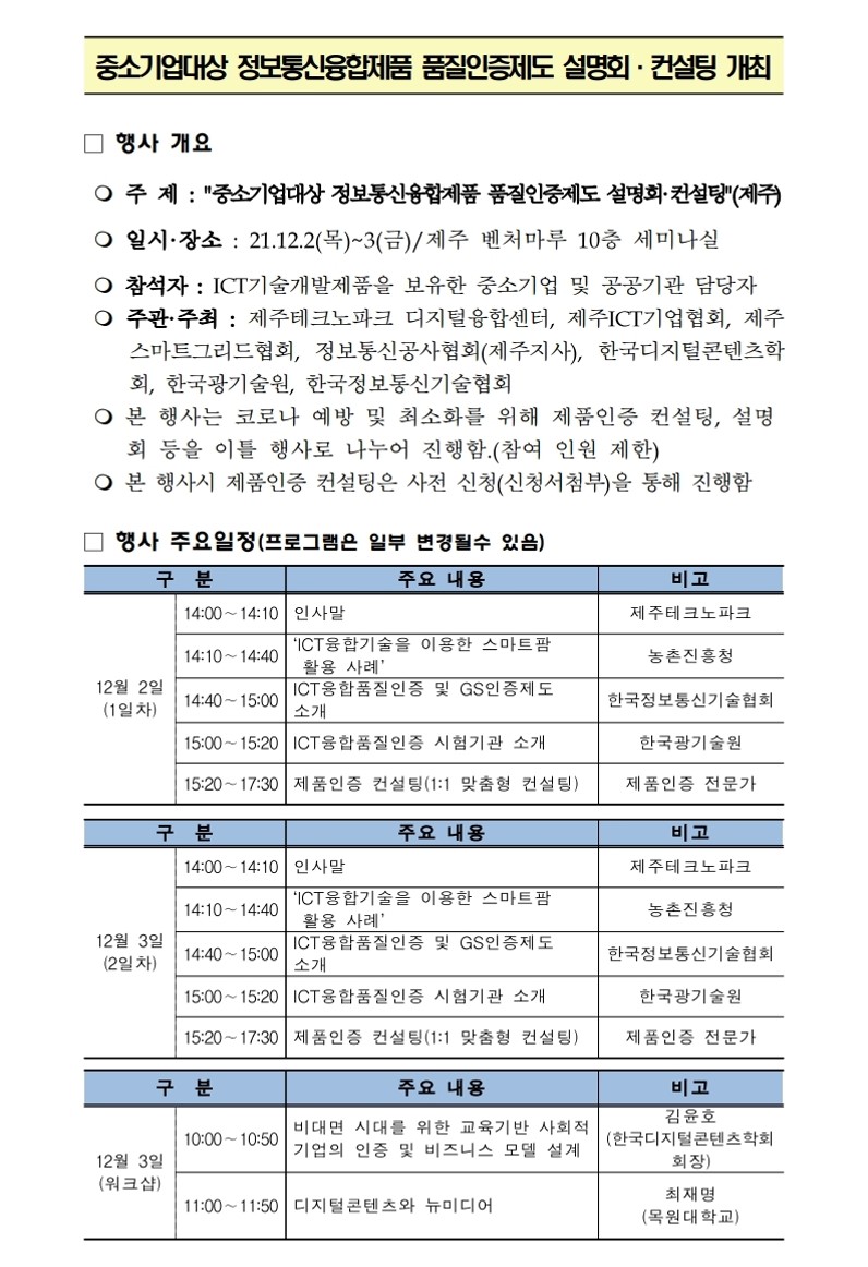 [워크샵] 중소기업대상 정보통신융합제품 품질인증제도 설명회·컨설팅 및 워크샵 개최