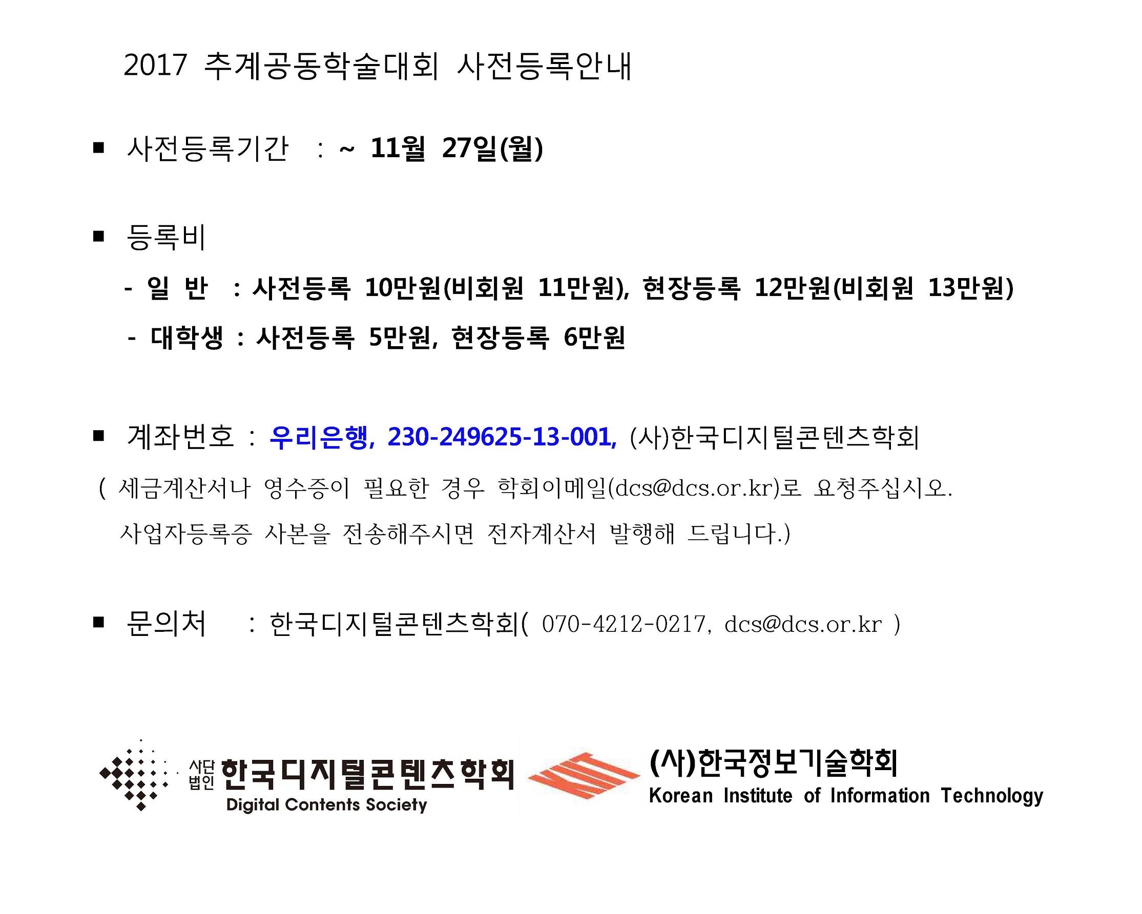 2017 추계공동학술대회 사전등록안내