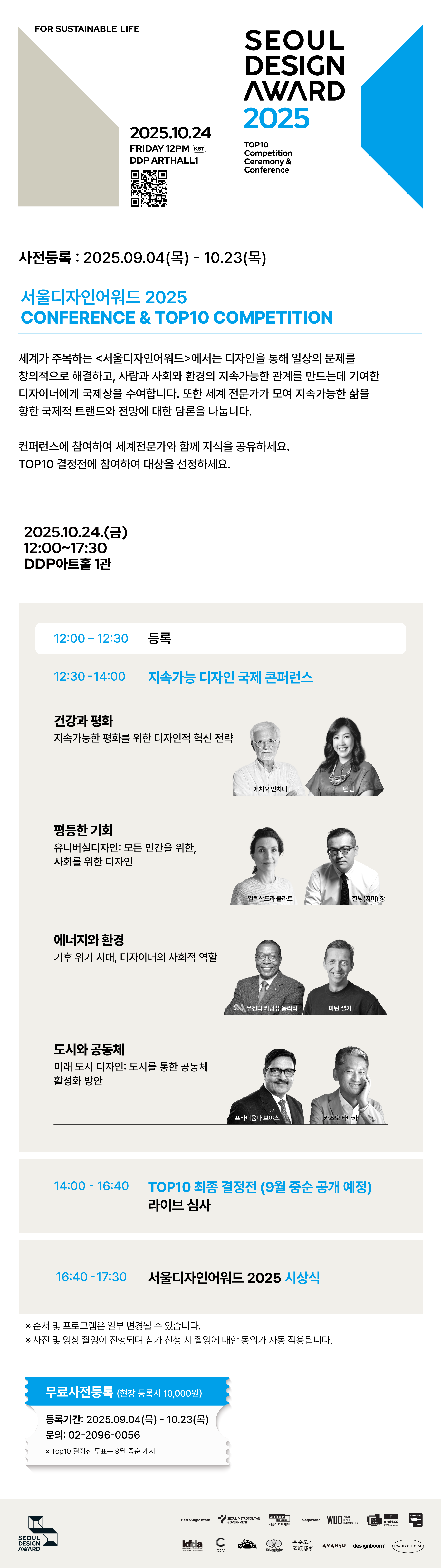 - 행사명: 서울디자인어워드 2025 콘퍼런스 & Top10 대상 결정전 및 시상식