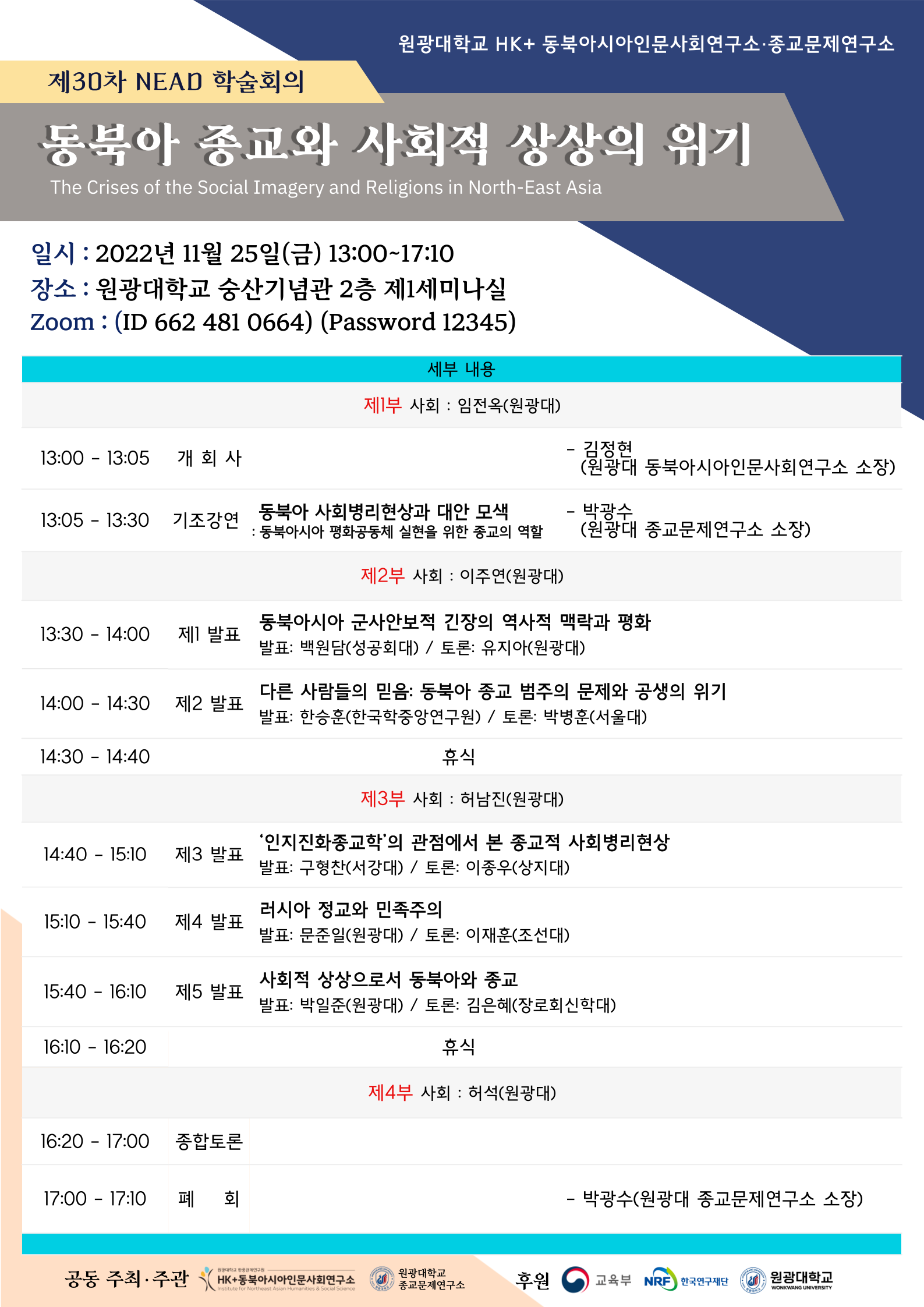 주제 : '동북아 종교와 사회적 상상의 위기'
