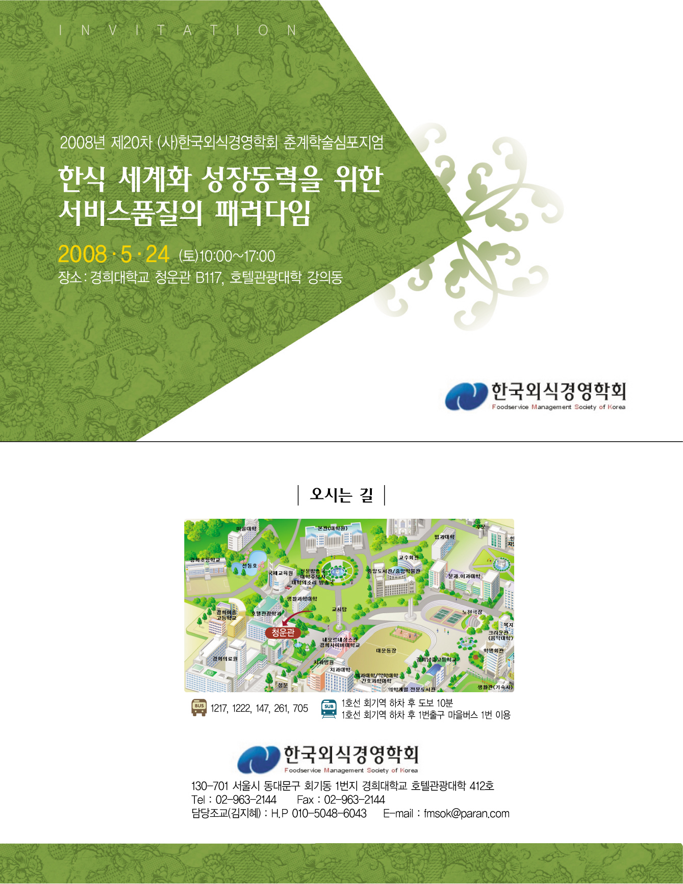 2008년 제20차 (사)한국외식경영학회 춘계학술심포지엄을 개최합니다.