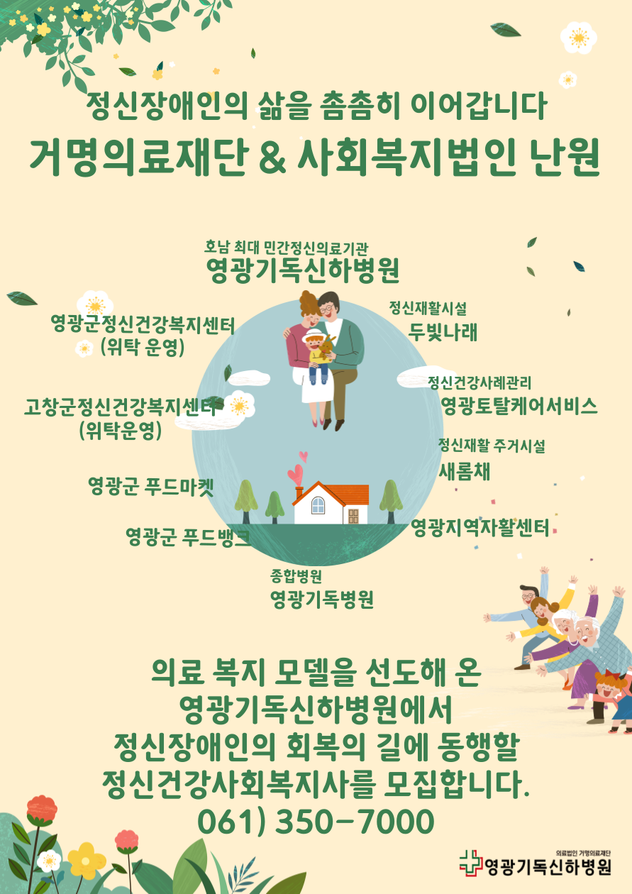 영광기독신하병원 1급 & 2급 정신건강사회복지사 모집 공고