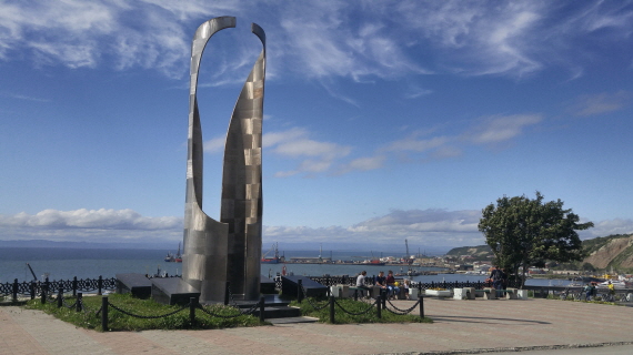 사진  3. 코르사코프 망향의 탑과 항구 전경