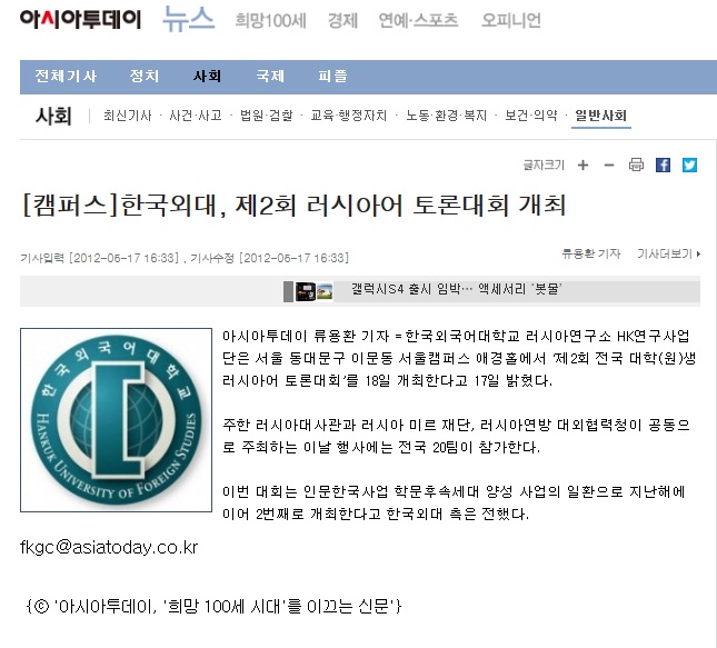 한국외대 러시아연구소 HK연구사업단, 제3회 전국 대학(원)생 러시아어 토론대회 개최