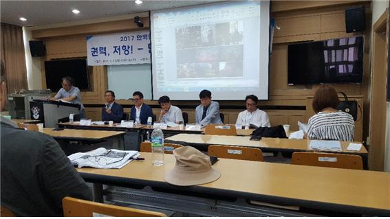2017 년  6 월  17 일 한국민속학회 하계 학술대회에 김혜진  HK 연구교수가 참가했다 . “ 권력 저항 ! -  민속학적 사유와 가능성 이라는 주제로 경희대에서 열린 이 학술대회는 권력에 맞선 다양한 형태의 저항 ( 우스개 설화 , 1980 년대 대학가 민중문화 촛불 시위 등 ) 에 대한 논의가 진행됐다 김혜진  HK 연구교수는  전통 생활터전을 둘러싼 토착 민족과 기업 간의 갈등 이라는 주제로 러시아의 대표적인 석유 & 가스 생산지로 변모한 네네츠인과 코미인의 전통영토가 어떠한 위험에 처해 있으며 이곳의 토착민족들은 이에 어떠한 방식으로 저항하고 있는지 발표했다 .