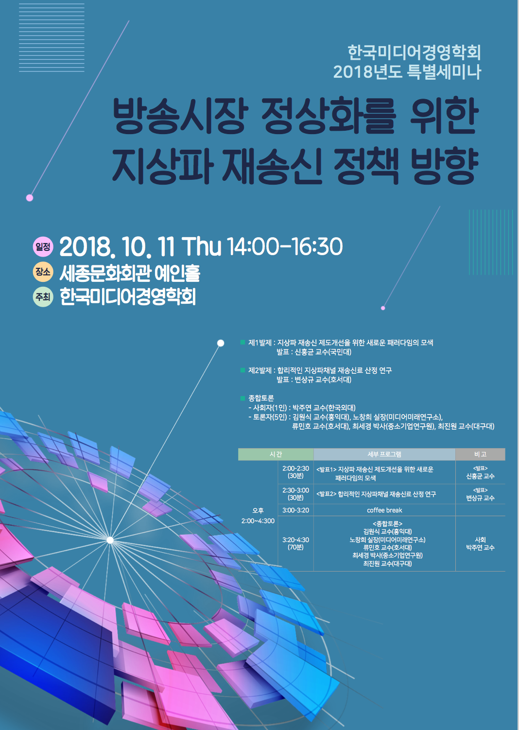[한국미디어경영학회] 지상파 재송신 정책과 관련한 특별세미나 안내