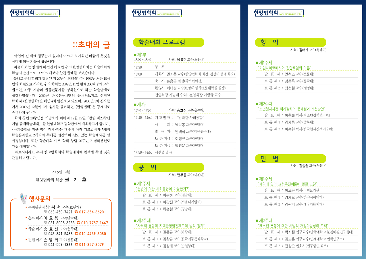 한양법학회 창립 제20주년 기념 동계학술대회 및 리셉션