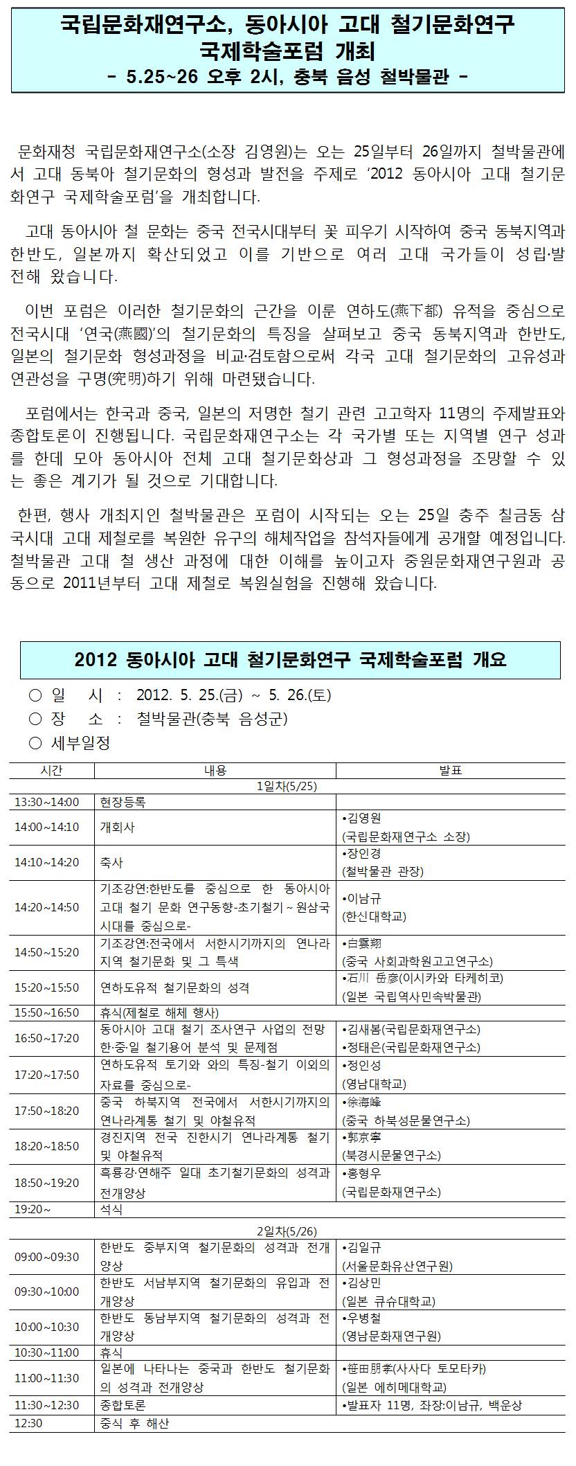 동아시아 철기문화 국제학술포럼(5.25-26)