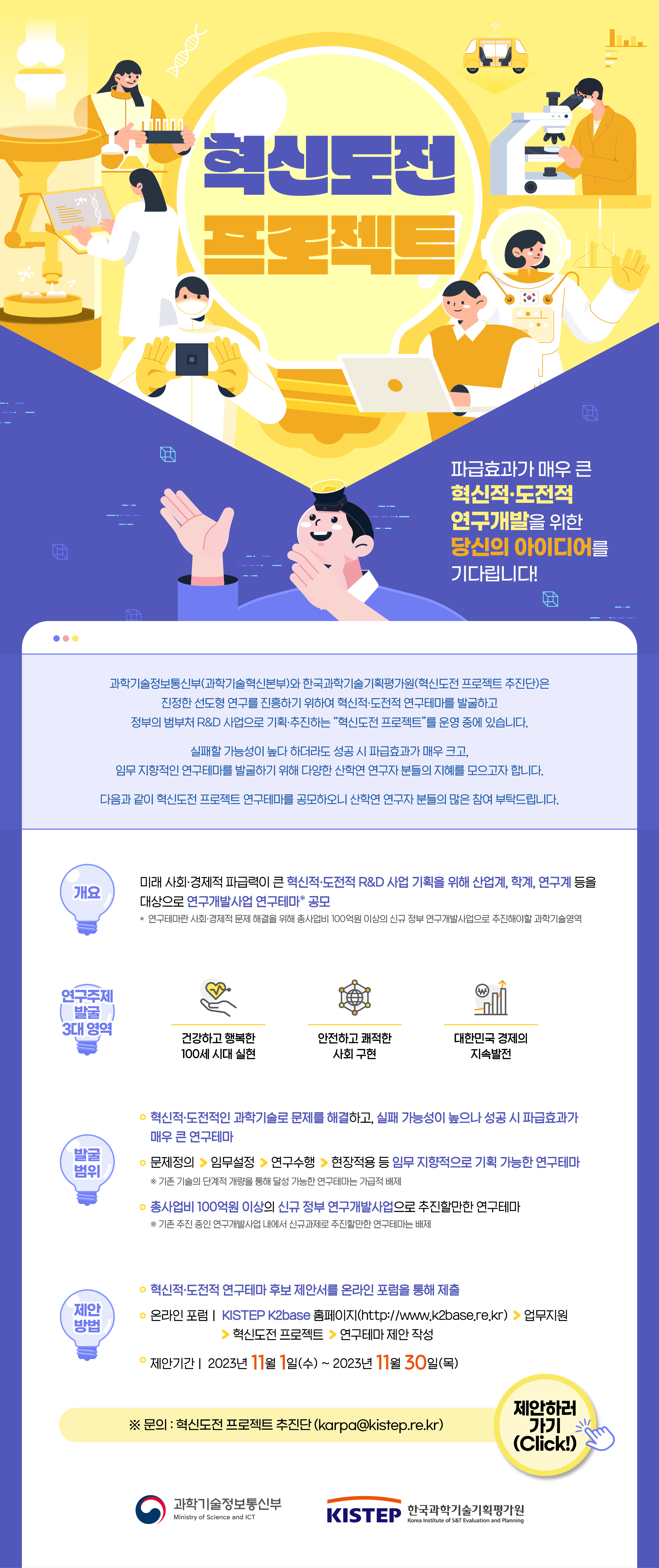 [한국과학기술기획평가원] 2023년 혁신도전 프로젝트 연구개발사업 발굴 안내