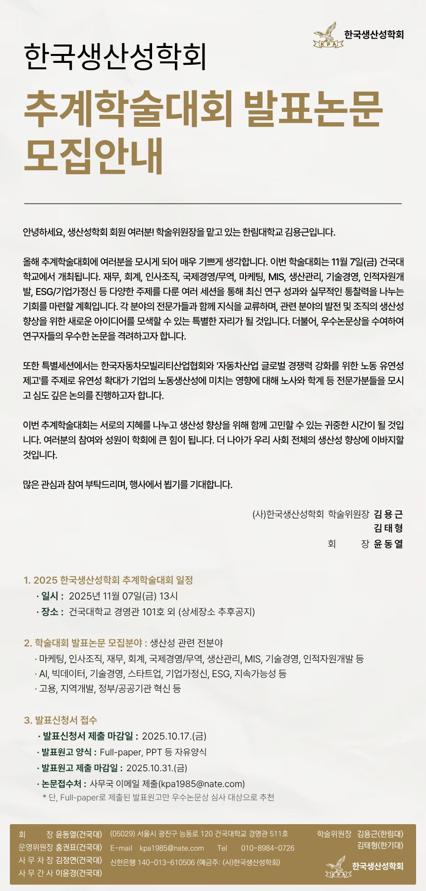 2025년 한국생산성학회 추계학술대회 안내