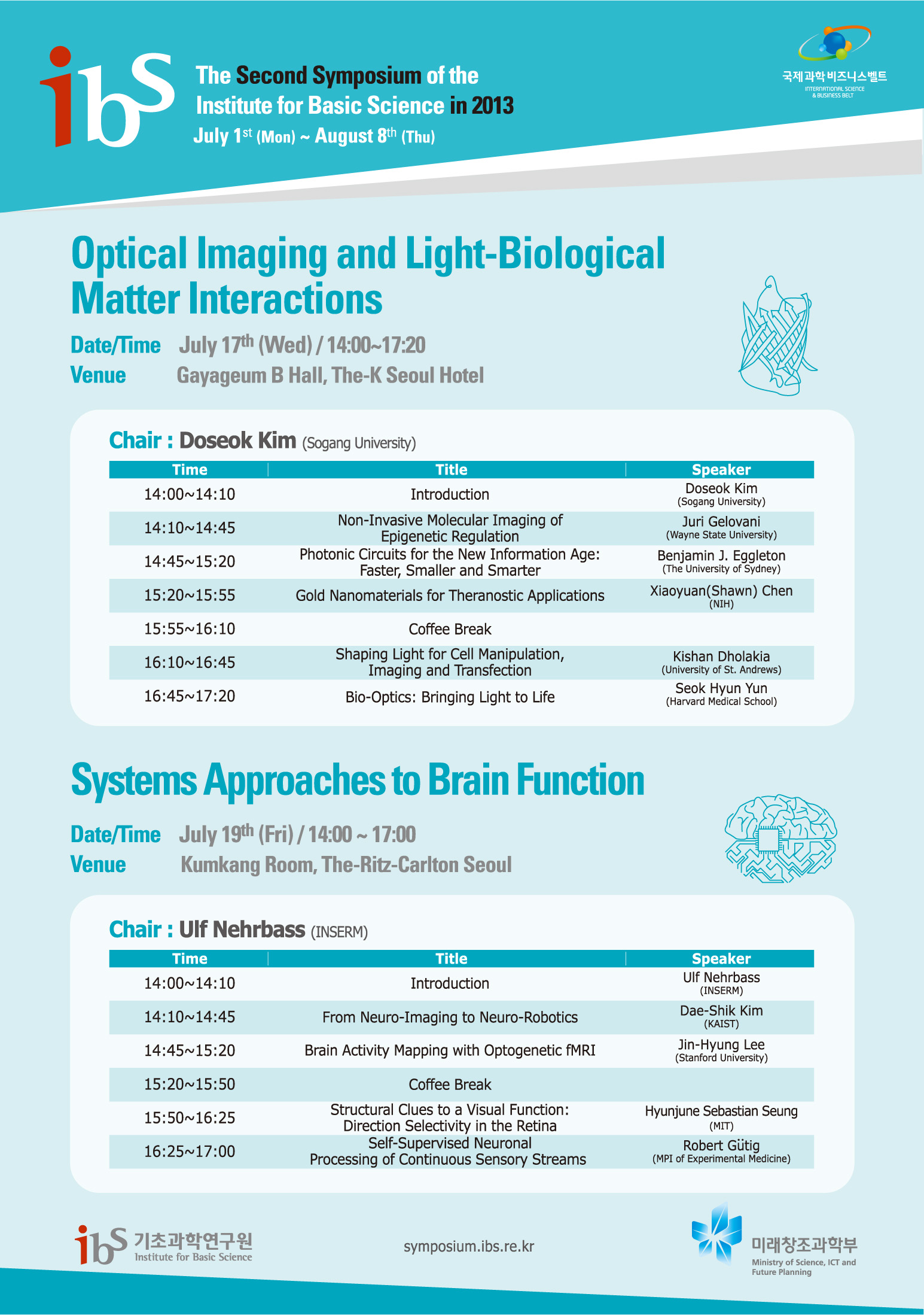 기초과학연구원 생명과학분과 관련 심포지엄 개최 안내(7/17,7/19)