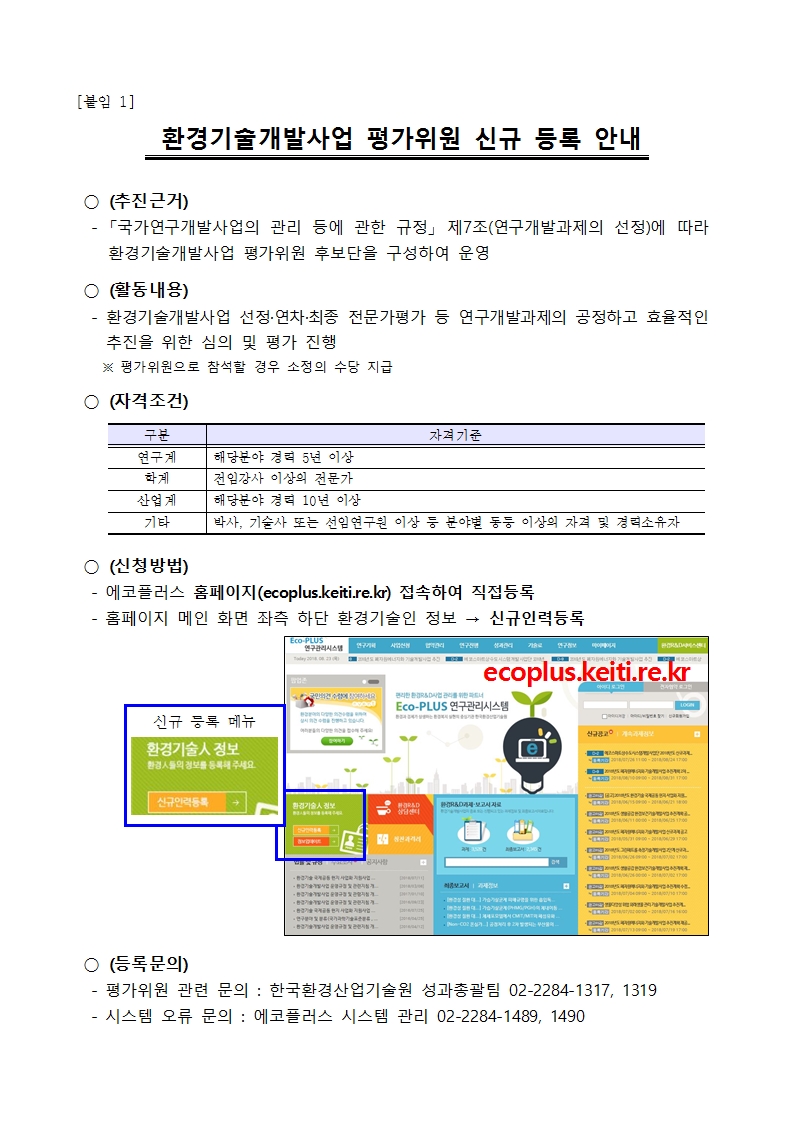 다. 신청방법 : 에코플러스(ecoplus.keiti.re.kr) 접속하여 직접 등록