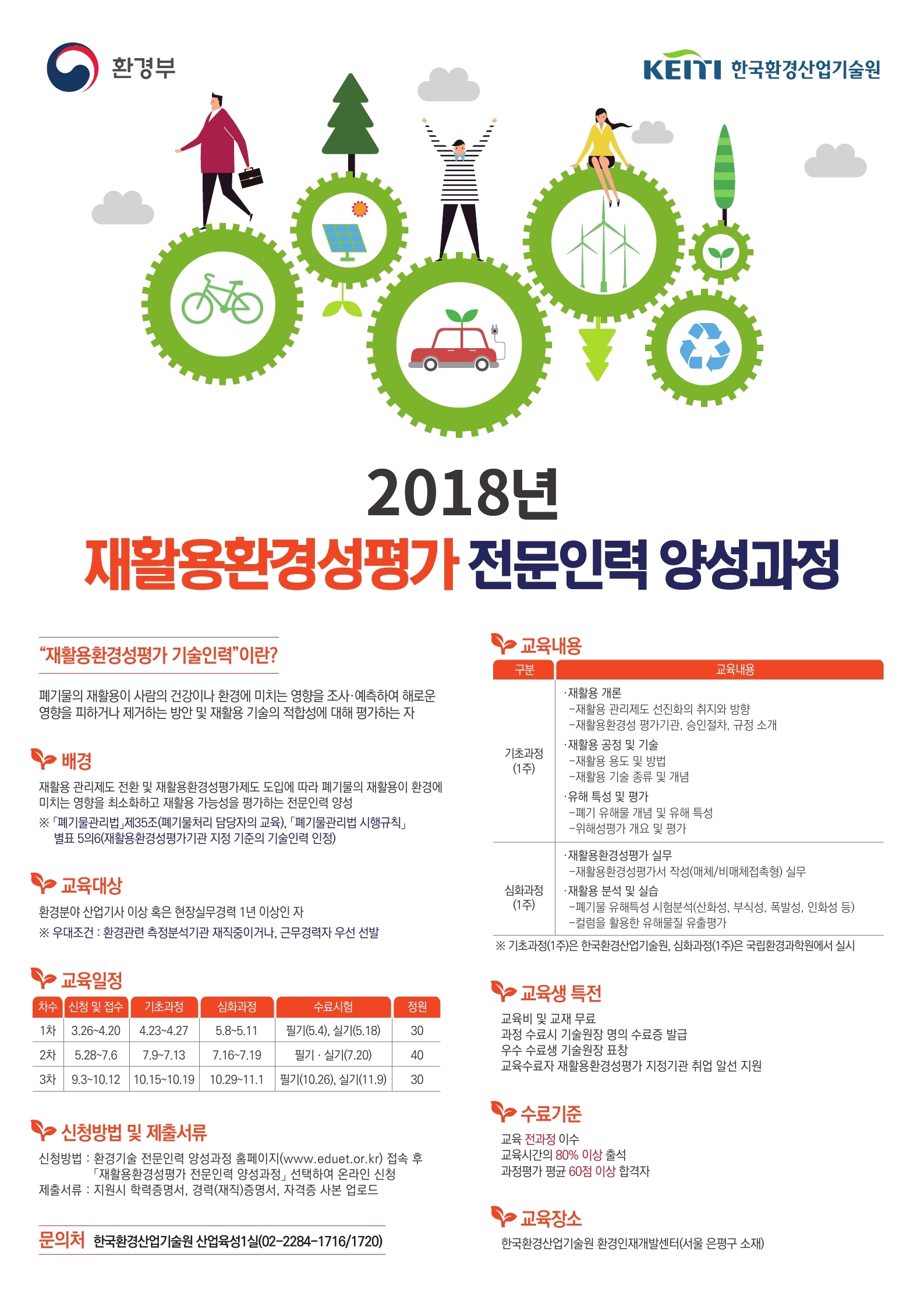 - 신청방법 : 환경기술 전문인력 양성과정 홈페이지(www.eduet.or.kr) 회원가입 후 「재활용환경성평가 전문인력 양성과정」선택하여 온라인 신청