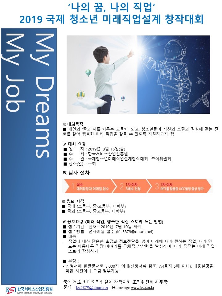 [한국서비스산업진흥원] 2019년 제6회 국제청소년미래직업설계창작대회 공고문(국내,국외) 홍보