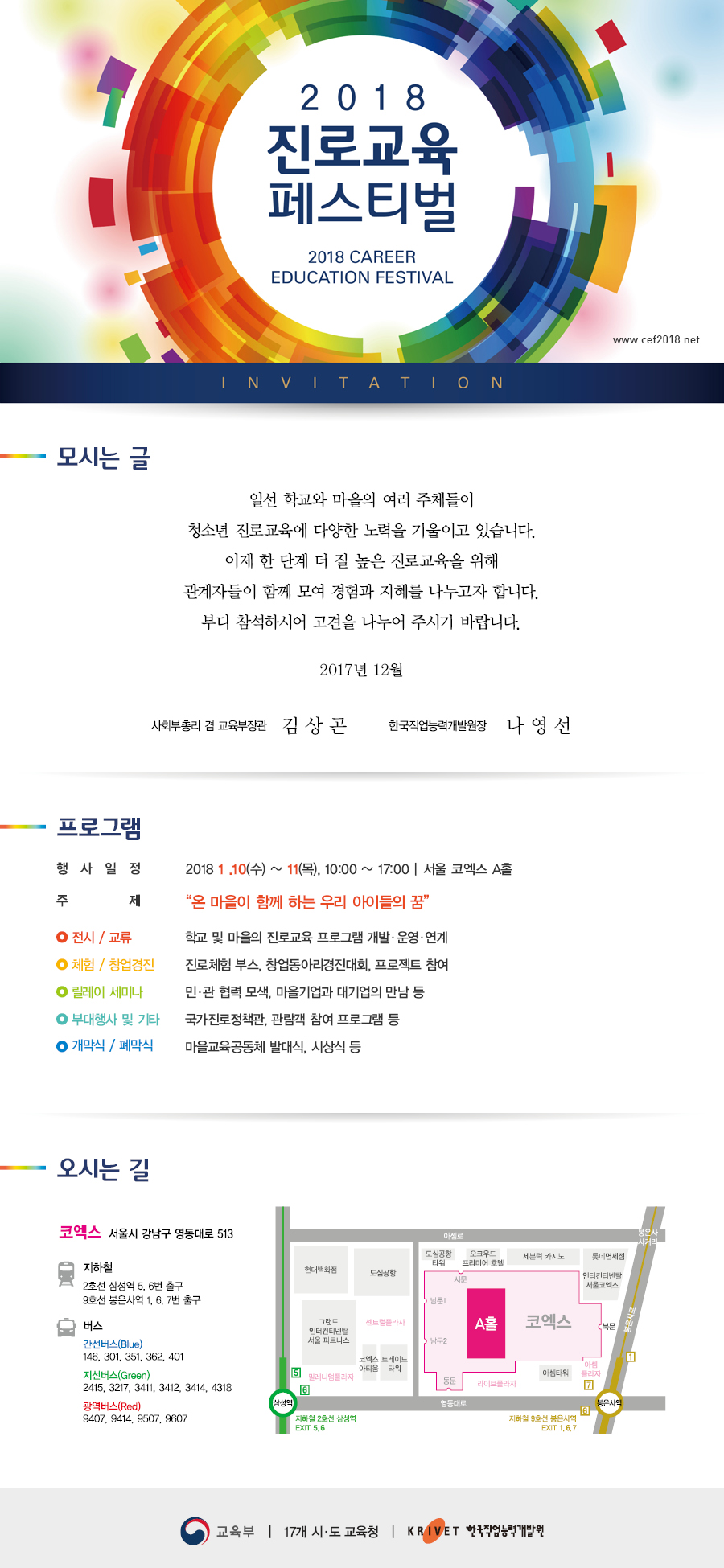 [한국직업능력개발원] '2018 진로교육 페스티벌' 행사에 초대합니다.
